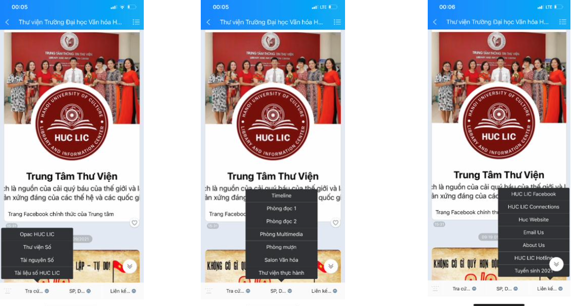 Để tặng điểm truy cập đến các CSDL của thư viện, Trung tâm Thông tin Thư viện, Trường Đại học Văn hoá Hà Nội đã tiến hành khởi tạo cổng thông tin tra cứu trực tiếp Zalo OA. Đây là mạng xã hội được giới trẻ sinh viên ưa thích sử dụng & được Zalo cung cấp miễn phí cho các tổ chức, đặc biệt là tổ chức giáo dục. Điểm tiện lợi là sinh viên không cần nhớ địa chỉ link truy cập website thư viện số mà chỉ cần mở Zalo trên điện thoại di động hoặc website và gõ từ khoá "Thư viện Trường Đại học Văn hoá Hà Nội" là cổng thông tin đã hiện ra. Hiện nay cổng thông tin Zalo OA của Trung tâm Thông tin Thư viện, Trường Đại học Văn hoá Hà Nội cho phép người dùng tin tra cứu và truy cập tài liệu số mọi lúc, mọi nơi thông qua internet.